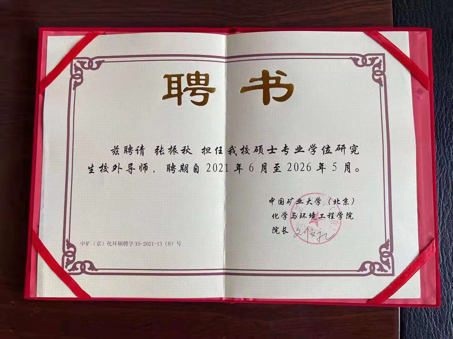 公司張振秋董事長(zhǎng)被中國(guó)礦業(yè)大學(xué)(北京)聘任為碩士研究生校外導(dǎo)師。
