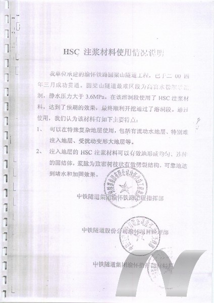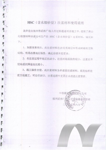 HSC含水細砂型注漿材料在可注性差的地層以有效劈裂注漿為主,并有少量滲透注漿現(xiàn)象存在。適用于: